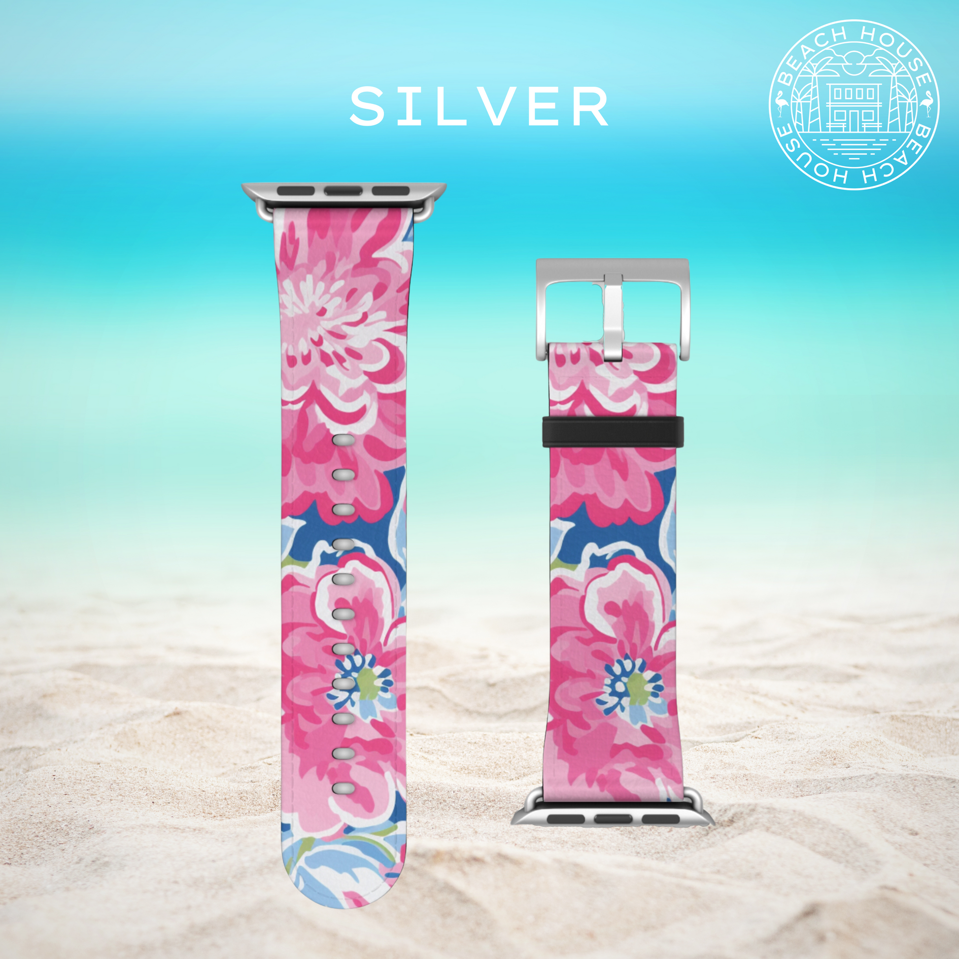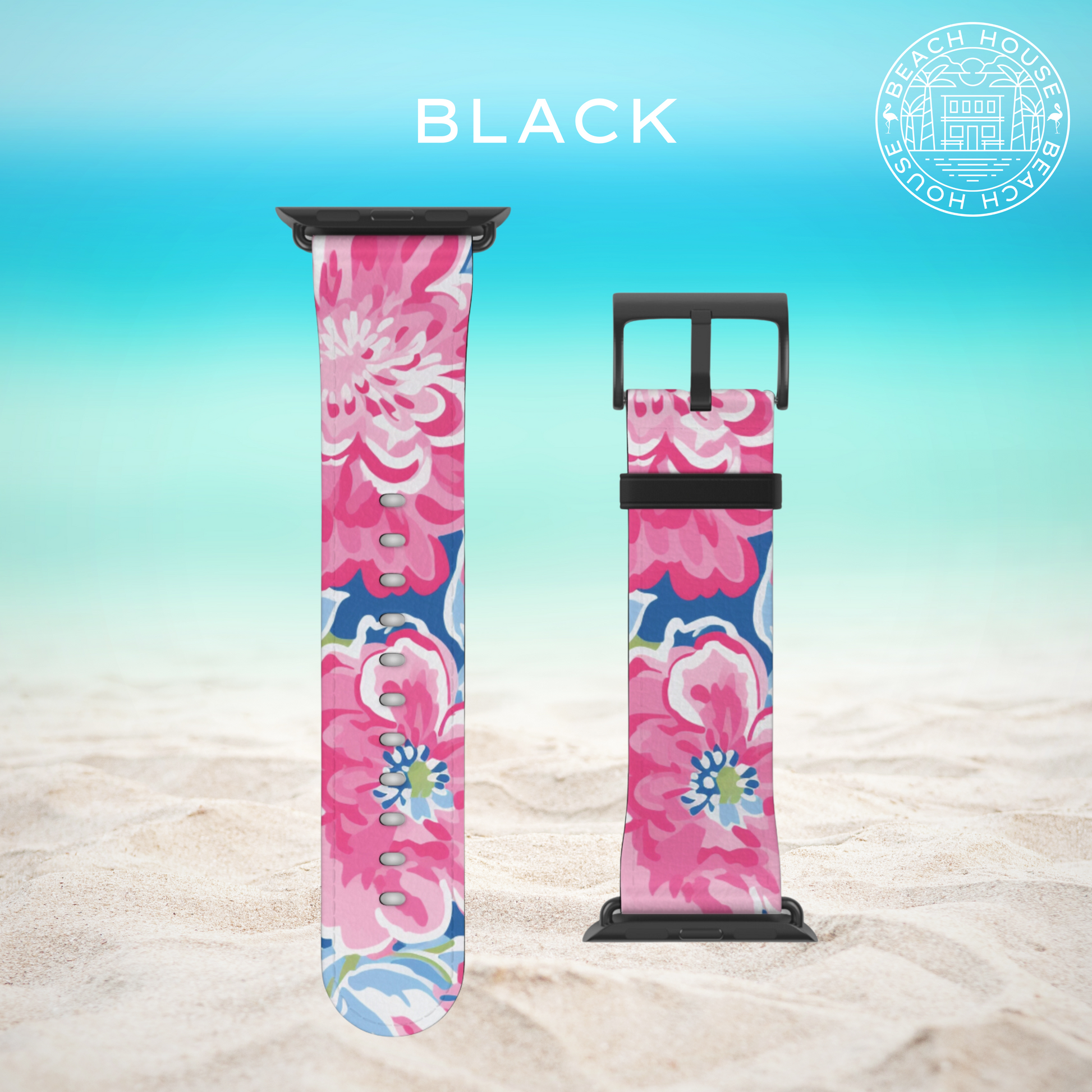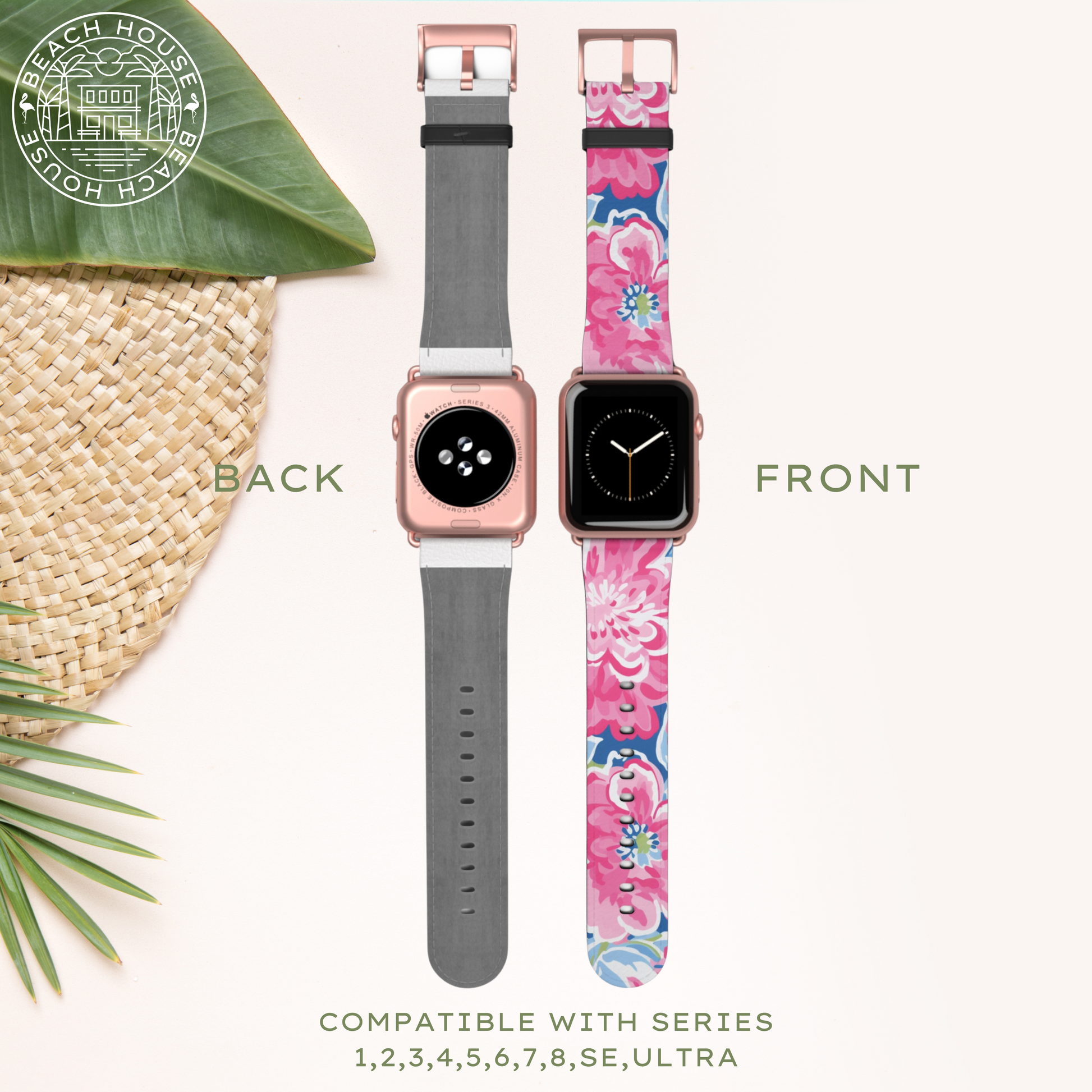Introducing the Lauderdale watch band, the perfect way to showcase your watch and keep paradise close by! Custom, tropical inspired watch band design. Upgrade your watch with ease. This band comes equipped with adapter hardware designed specifically for your Apple® Watch model. These high quality, animal-friendly faux leather watch straps are the extra missing punch to flirty outfits and nights out.