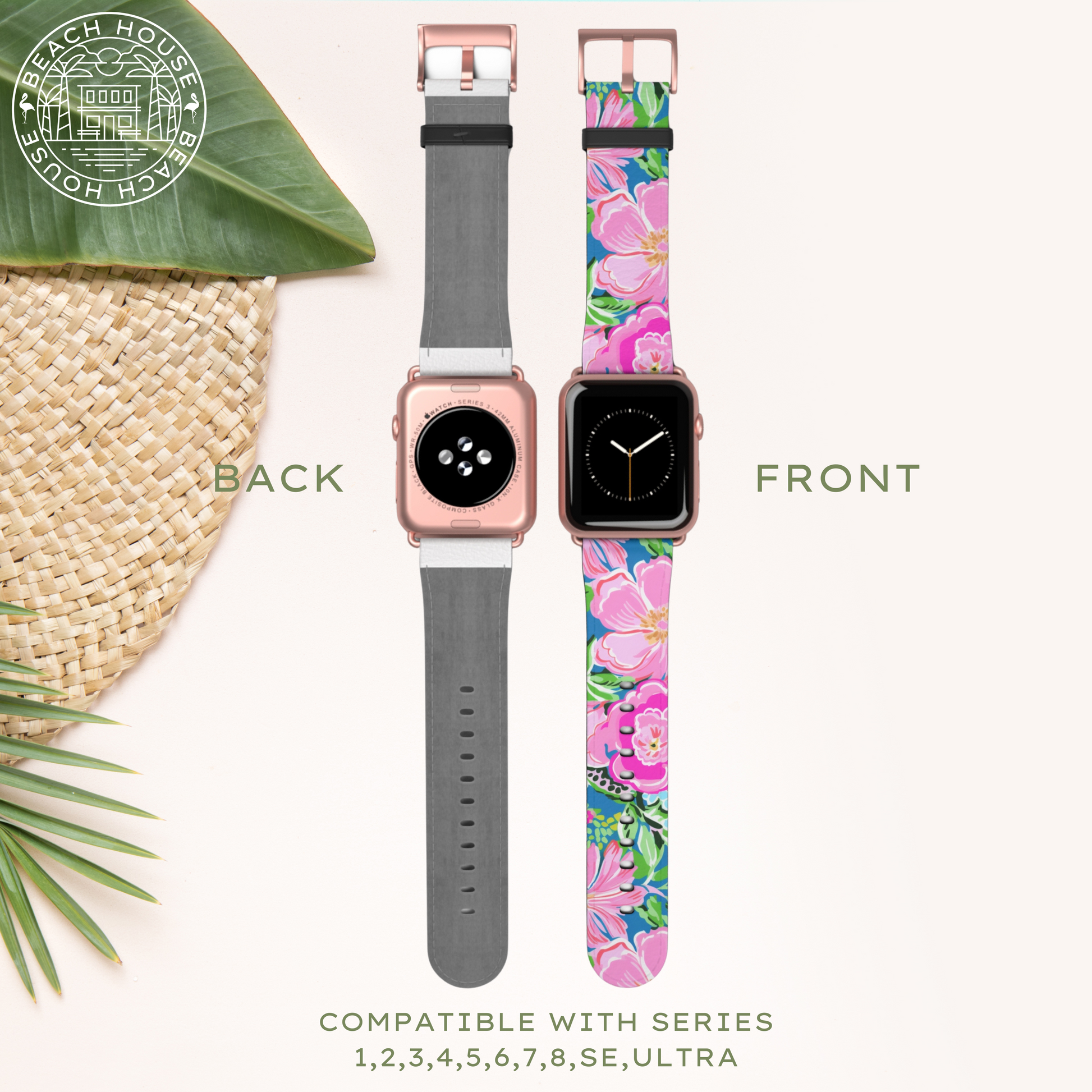 Whether you own Series 1, 2, 3, 4, 5, 6, 7, 8, 9, SE, or Ultra, enjoy flawless compatibility and effortless integration. Available in 2 separate sizes (S/M & M/L) and 4 color options to seamlessly match your watch (Black, Silver, Gold, & Rose Gold). Show off your watch in style and bring the essence of beach paradise, wherever your journey takes you.