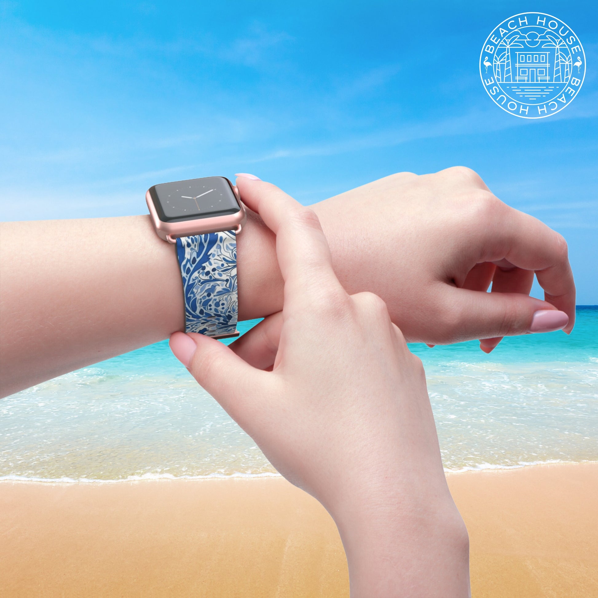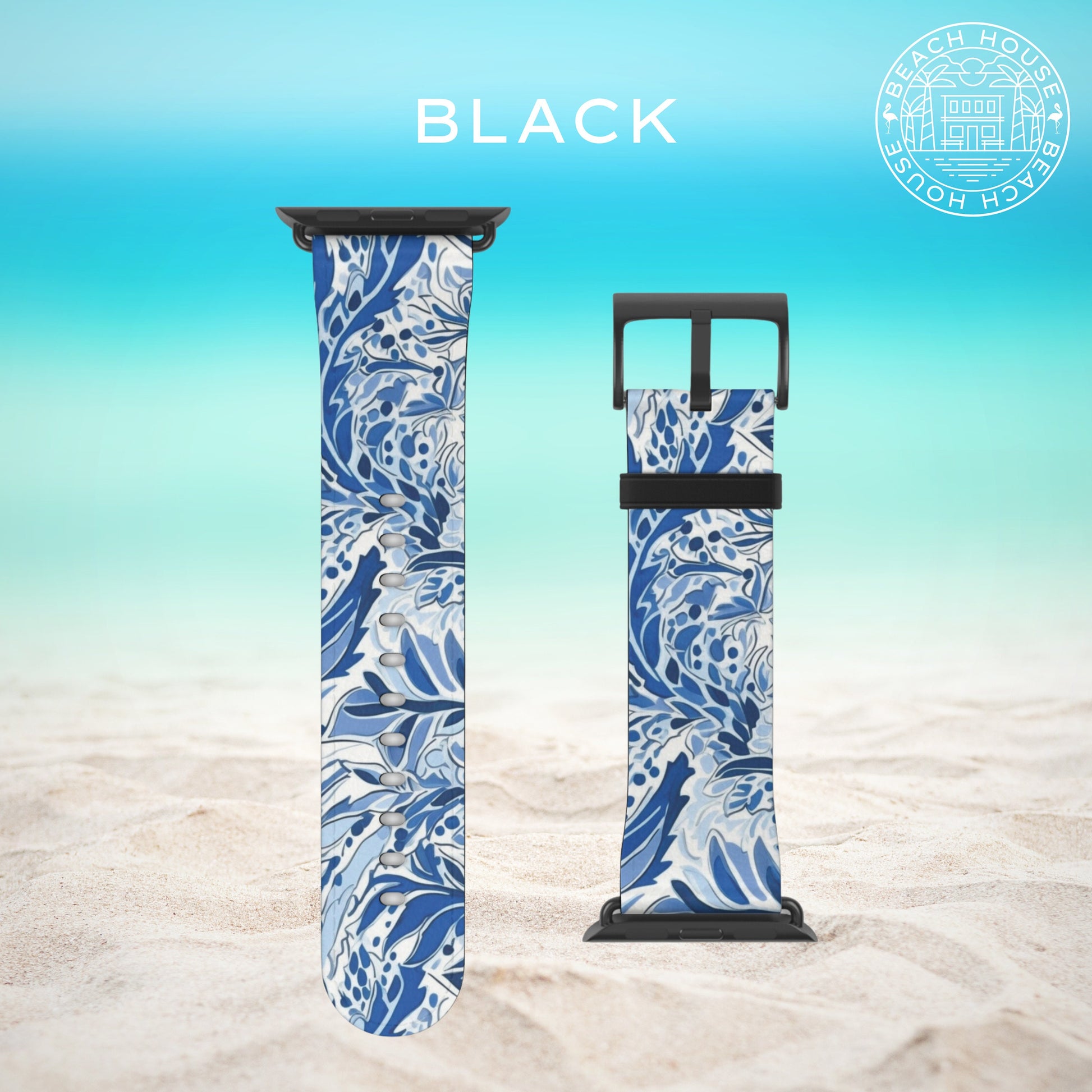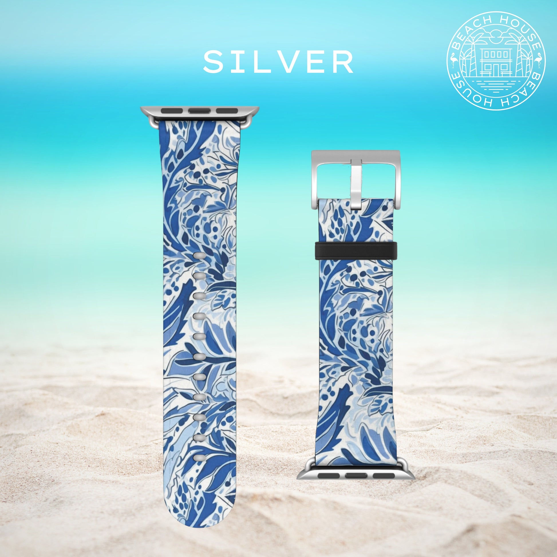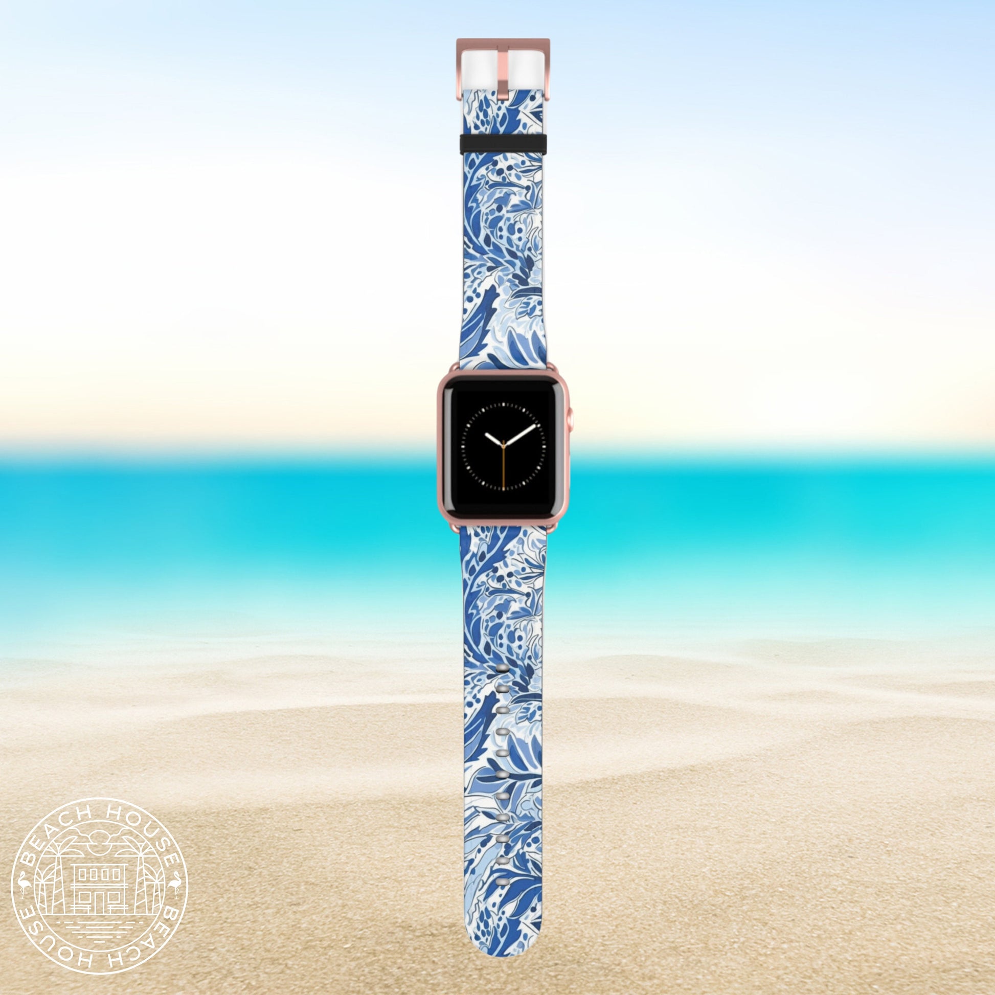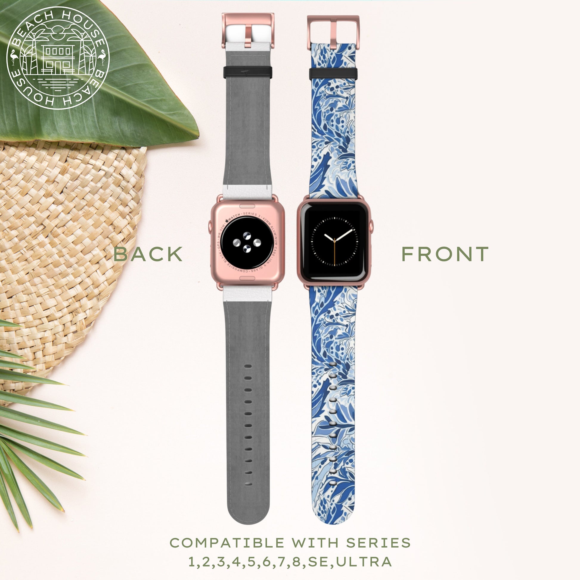 Introducing the Nags Head watch band, the perfect way to showcase your watch and keep paradise close by! Custom, tropical L.P. inspired watch band design. Upgrade your watch with ease. This band comes equipped with adapter hardware designed specifically for your Apple® Watch model. These high quality, animal-friendly faux leather watch straps are the extra missing punch to flirty outfits and nights out.