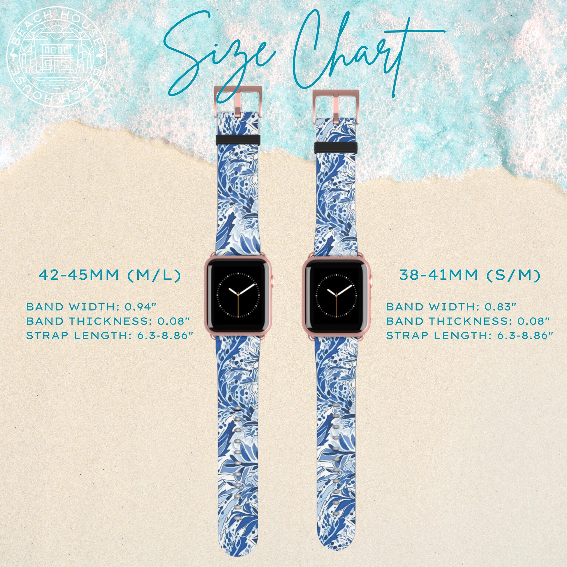 Whether you own Series 1, 2, 3, 4, 5, 6, 7, 8, 9, SE, or Ultra, enjoy flawless compatibility and effortless integration. Available in 2 separate sizes (S/M & M/L) and 4 color options to seamlessly match your watch (Black, Silver, Gold, & Rose Gold). Show off your watch in style and bring the essence of beach paradise, wherever your journey takes you.