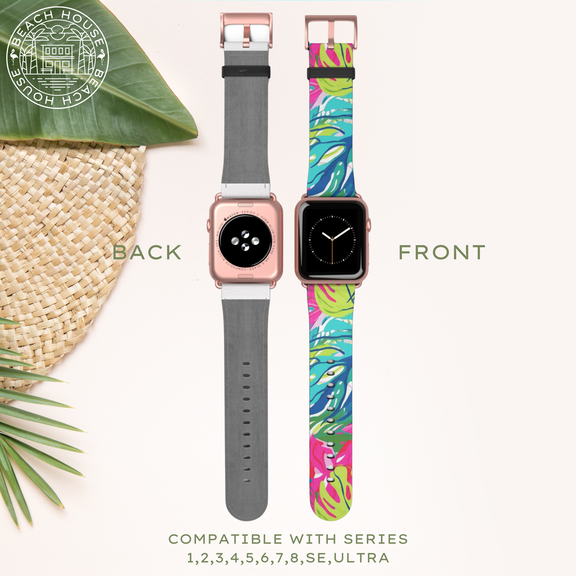 Whether you own Series 1, 2, 3, 4, 5, 6, 7, 8, 9, SE, or Ultra, enjoy flawless compatibility and effortless integration. Available in 2 separate sizes (S/M & M/L) and 4 color options to seamlessly match your watch (Black, Silver, Gold, & Rose Gold). Show off your watch in style and bring the essence of beach paradise, wherever your journey takes you.