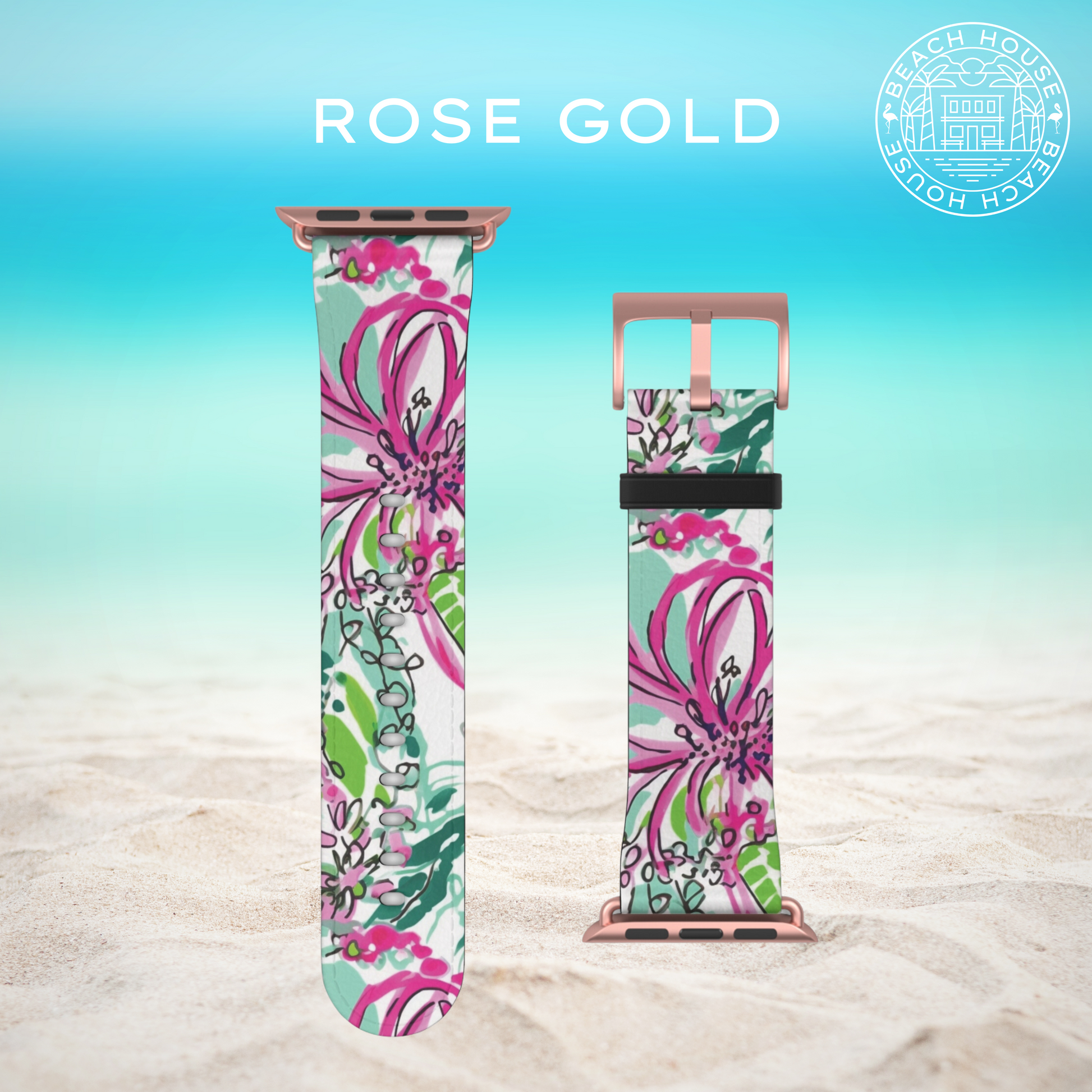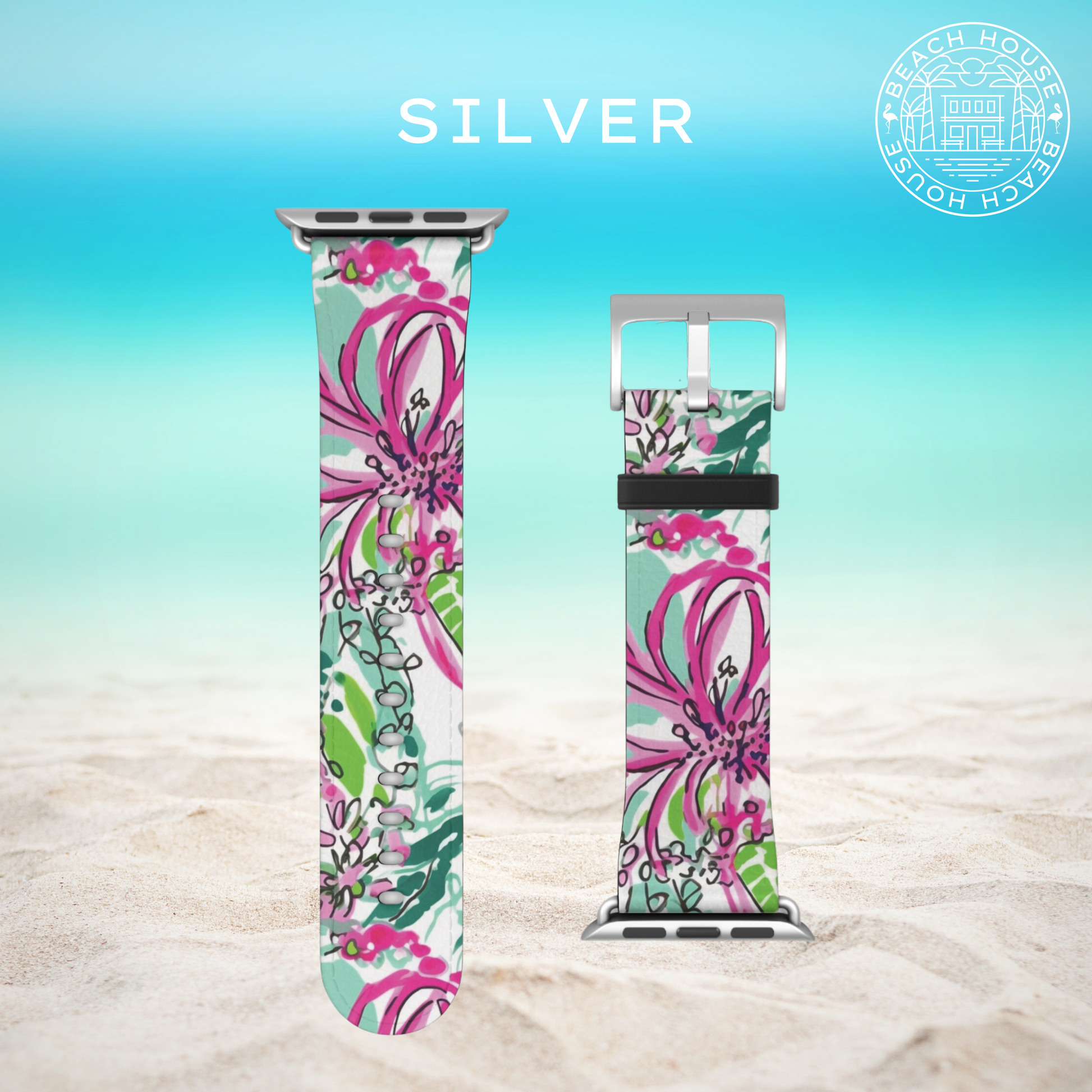 Introducing the Coronado watch band, the perfect way to showcase your watch and keep paradise close by! Custom, tropical inspired watch band design. Upgrade your watch with ease. This band comes equipped with adapter hardware designed specifically for your Apple® Watch model. These high quality, animal-friendly faux leather watch straps are the extra missing punch to flirty outfits and nights out.